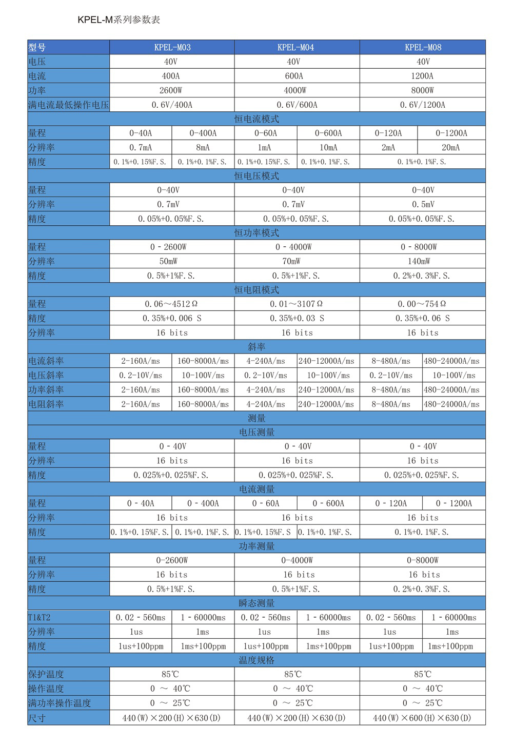 KPEL-M系列電壓為0~40V可調(diào),單臺電流可達1200A,低壓帶載能力可達0.6V@1200A。產(chǎn)品具備高精度,高可靠性,是使用者測試的優(yōu)良選擇。